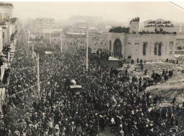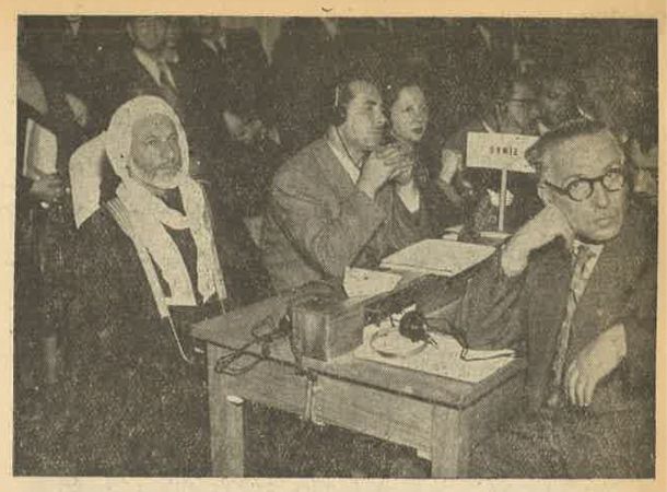 كان الشيخ محمد الأشمر من قادة الثورة السورية الكبرى 1925 والثورة الفلسطينية 1936. وبعد الجلاء شارك في مختلف النشاطات السياسية، مثل: التحالف مع الشيوعيين في انتخابات 1954. وترأّس منظمة أنصار السلم في سورية، وشارك في العديد من المؤتمرات العالمية. في الصورة أعضاء الوفد السوري في مؤتمر السلم العالمي في وارسو عام 1950: الشيخ محمد الأشمر، إبراهيم حمزاوي، فلك طرزي، عبد السلام حيدر، العامل ياسين شوا، الفلاح أحمد أباظة، والفنانون سعيد تحسين وجوزيف موصلي. نقلاً عن مجلة الطريق العدد 76 سنة 1951.