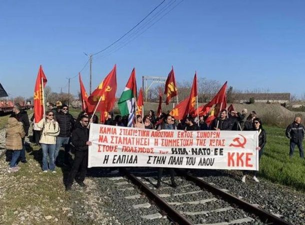 أفاد الموقع الإخباري للحزب الشيوعي اليوناني 902.gr، بأن أعضاء الحزب ومنظمته الشبابية أوقفوا قطارا يحمل دبابات أمريكية من ميناء ألكسندروبوليس إلى بلغاريا وأجبروه على العودة.