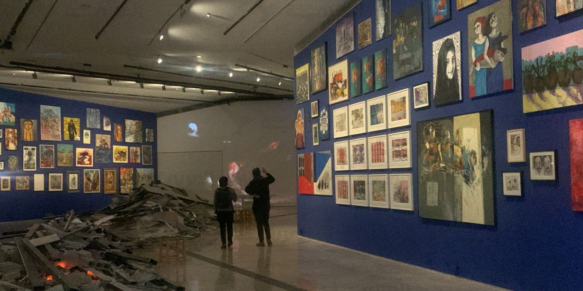 تحمل أولى المساحات عنوان المعرض نفسه، وتحوي شاشة عملاقة تعرض جرائم تدمير المنازل والمتاحف والمؤسسات الثقافية والمحترفات الفنية وغيرها، و286 عملاً فنياً تطغى عليها اللوحات، إلى جانب بعض الأعمال التركيبية التي تتكئ أساساً على فن الفيديو لقرابة 100 فنان وفنانة من غزة جمعت من بيوت ومؤسسات وأماكن عرض فنية في الضفة الغربية. ثم معرض (المفقودون)، ومعرض (نساء غزة) الذي يسلط الضوء على قطع تراثية من المنجز الشعبي لمناطق غزة المختلفة.