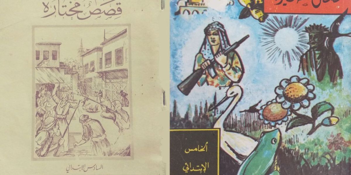 في الصورة غلاف كتاب «قصص قصيرة» للصف الخامس الابتدائي «1980-1981» وغلاف كتاب «قصص مختارة» للصف السادس الابتدائي «1990-1991». يحتوي الغلاف الأول صورة فدائي فلسطيني، ويحتوي الثاني صورة معركة من معارك الثورة السورية الكبرى في دمشق. هل كانت المناهج القديمة أفضل من المناهج الحالية؟
